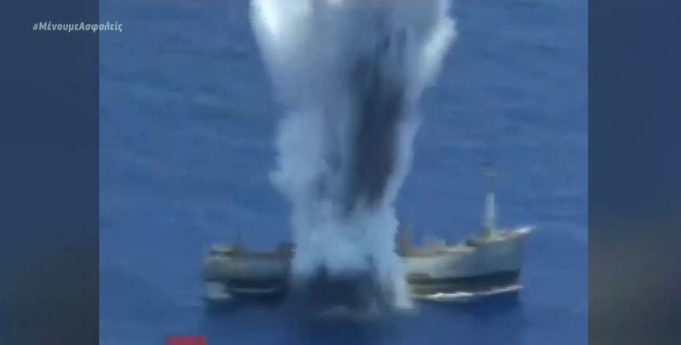 Παροπλισμένο πλοίο που προσομοίαζε σκάφος που έχει παραβιάσει τις κόκκινες γραμμές της Ελλάδας, βλήθηκε από πυραύλους και τορπίλη που εκτοξεύτηκαν από αεροσκάφη, ελικόπτερο, πλοίο και υποβρύχιο.