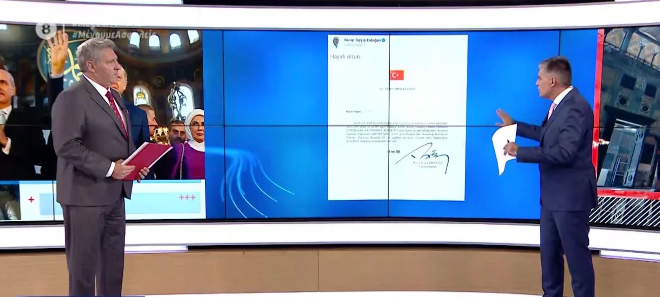 Το διάταγμα, με το οποίο η Αγία Σοφία θα ανοίξει ως τζαμί για τη μουσουλμανική λατρεία, υπέγραψε λίγα λεπτά μετά την απόφαση του τουρκικού ΣτΕ ο πρόεδρος της Τουρκίας, Ρετζέπ Ταγίπ Ερντογάν