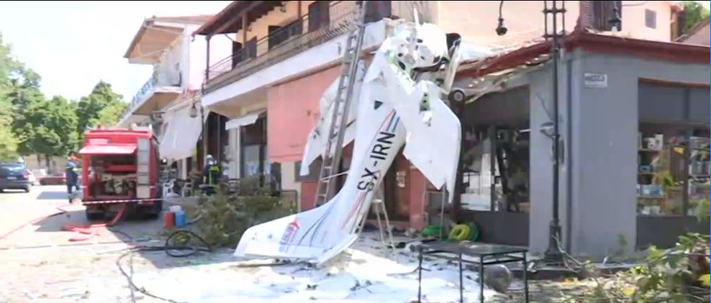 Το μονοκινητήριο αεροσκάφος έχει σταθεί όρθιο πάνω στον τοίχο μιας μονοκατοικίας στην πλατείας της Πρώτης Σερρών. Δίπλα, πυροσβέστες έχουν ρίξει τόνους ειδικού αφρού προκειμένου να μην υπάρξει ανάφλεξη της κηριζόνης που έχει διαρρεύσει από το αεροσκάφος.
