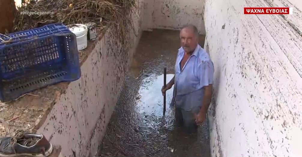 «Τα νερά έμπαιναν από παντού. Ήταν τέτοια η δύναμη που δεν γινόταν τίποτα. Κινδυνεύσαμε», λέει εμφανώς συγκινημένος στην κάμερα του MEGA πλημμυροπαθής.