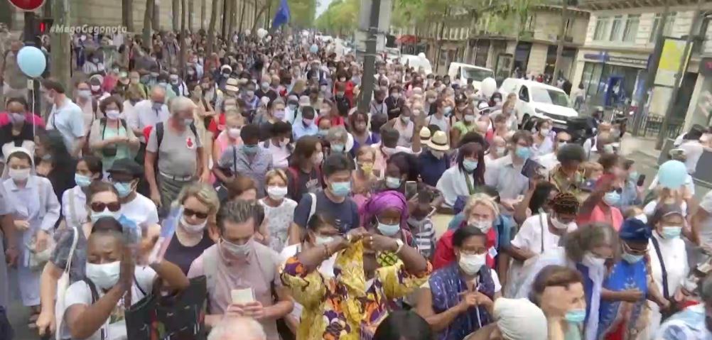 Κατάνυξη με υποχρεωτική την χρήση μάσκας, χωρίς όμως να τηρούνται οι αποστάσεις ασφαλείας. Περίπου 2.000 πιστοί πήραν μέρος χθες, παραμονή της Κοίμησης της Θεοτόκου, στη λιτανεία προς τον Καθεδρικό Ναό της Παναγίας των Παρισίων, ενώ η γαλλική πρωτεύουσα έχει ήδη κηρυχθεί σε ζώνη υψηλού κινδύνου λόγω πανδημίας.