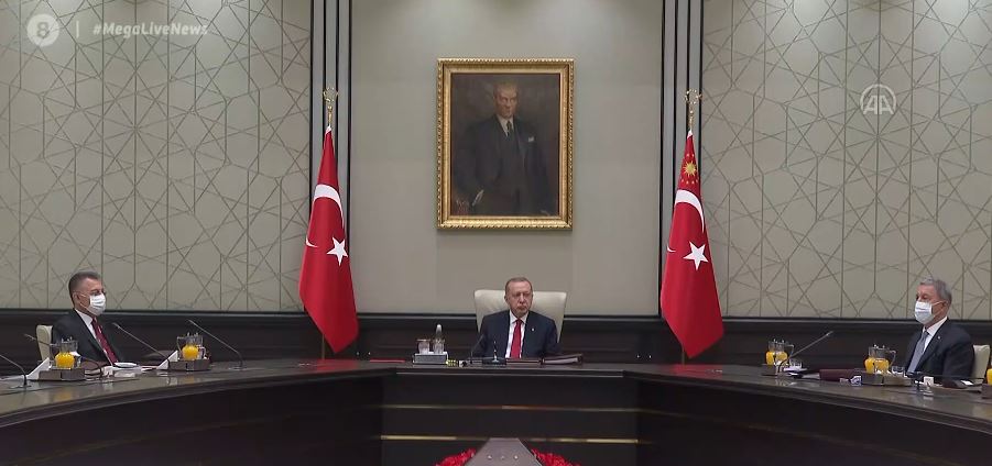 Ο Ταγίπ Ερντογάν ανακουφισμένος από την αναβολή της συνόδου που πιθανότατα θα επέβαλε κυρώσεις στην Τουρκία ξαναδείχνει το πραγματικό του πρόσωπο με το μήνυμα του στο Συμβούλιο Εθνικής Ασφαλείας να είναι πως η Τουρκία δεν θα κάνει βήμα πίσω όπως γράφει το CNN Turk.