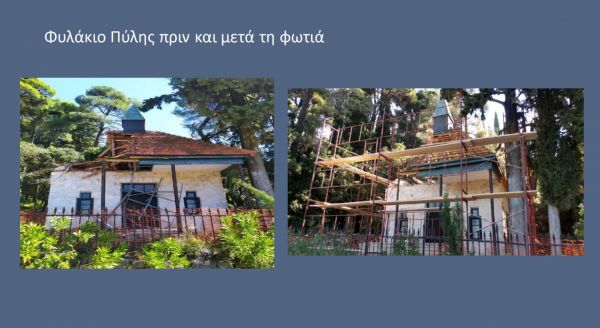»Στα πολιτιστικά μνημεία, γιατί το πολιτιστικό περιβάλλον είναι ένα ευρύτερο πράγμα, οι απώλειες δεν ήταν μεγάλες. Χάρη στην παρέμβαση όλων, κυρίως της Πολιτικής Προστασίας, της Πυροσβεστικής, της Ελληνικής Αστυνομίας σε συντονισμένες προσπάθειες με τις δικές μας υπηρεσίες, η ζημία περιορίστηκε στο λιγότερο δυνατόν, ευτυχώς. Αυτή τη στιγμή προχωρούμε και επιταχύνουμε τις διαδικασίες τις οποίες έχουμε αναλάβει ως Υπουργείο Πολιτισμού για την εφαρμογή του σχεδίου μας για την αποκατάσταση των κτιρίων, έτσι όπως προβλέπεται από τη μελέτη βιωσιμότητας.