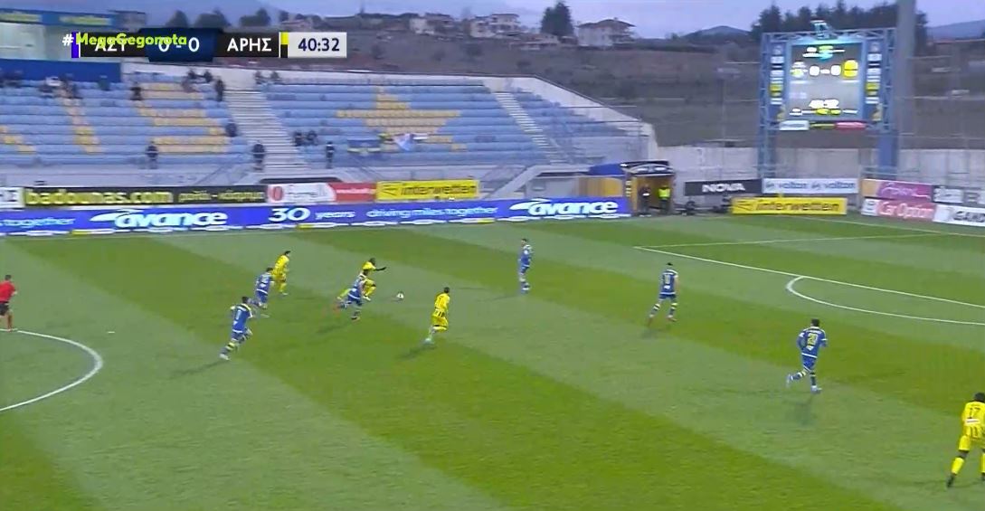 Στο 41’ ο Καμαρά άνοιξε το σκορ για τους «κιτρινόμαυρους», με δυνατό σουτ από το ημικύκλιο, με τον Παπαδόπουλο να μην αντιδρά σωστά.