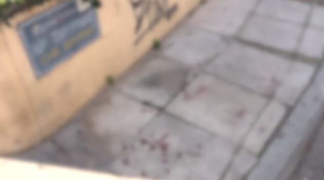Οι κηλίδες αίματος στο πεζοδρόμιο, αποτέλεσμα χθεσινής συμπλοκής ανηλίκων στο Χαλάνδρι σοκάρουν.