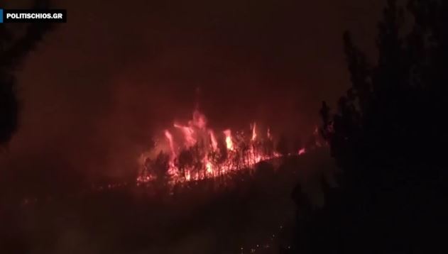 Μεγάλη φωτιά στη Χίο ξέσπασε χθες βράδυ κοντά στο χωριό Κατάβαση βορειοδυτικά του νησιού.