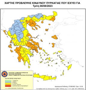 Πολύ υψηλό κίνδυνο πυρκαγιάς για 9 περιοχές για αύριο Τρίτη, προβλέπει ο Χάρτης Πρόβλεψης Κινδύνου Πυρκαγιάς που εκδίδει η Γενική Γραμματεία Πολιτικής Προστασίας του υπουργείου Κλιματικής Κρίσης & Πολιτικής Προστασίας.