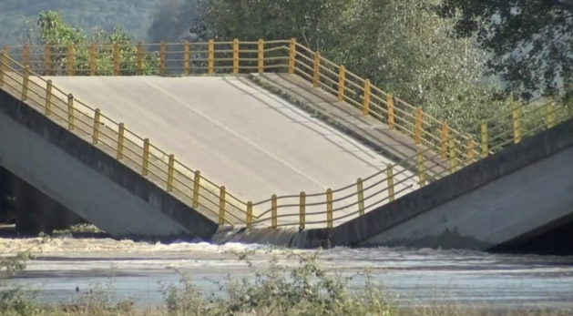Από τις πλημμύρες και την διάβρωση του εδάφους η γέφυρα στον Παλαιόπυργο της Λάρισας λύγισε, κόπηκε σχεδόν στα δύο.