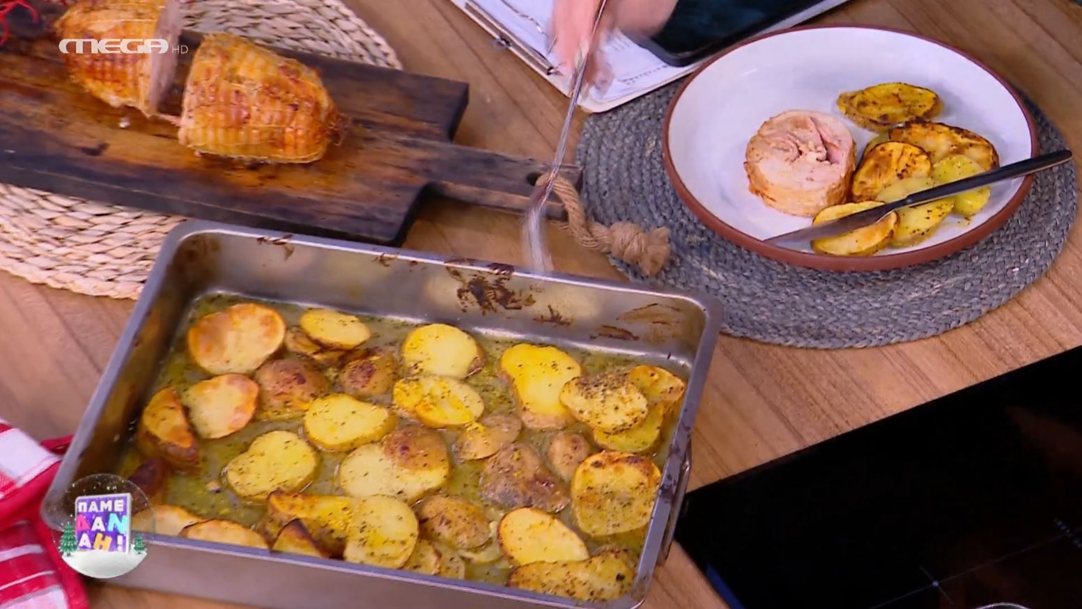 Ο Τίμος Ζαχαράτος φτιάχνει στην κουζίνα του «Πάμε Δανάη!» πατάτες στον φούρνο.