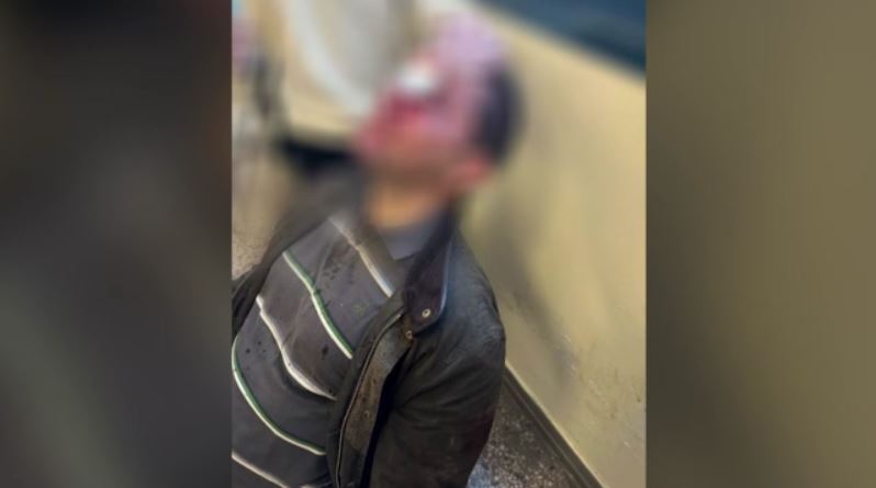 Στην φωτογραφία φαίνεται ο φοιτητής με εμφανή τα τραύματα στο πρόσωπό του. Η αίθουσα βανδαλισμένη.