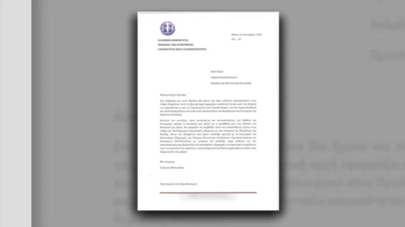 Επιστολή προς τον πρόεδρο της Eξεταστικής Eπιτροπής της Bουλής για τον ΟΠΕΚΕΠΕ, Ανδρέα Νικολακόπουλο, απέστειλε ο υφυπουργός παρά τω πρωθυπουργώ Γιώργος Μυλωνάκης.
