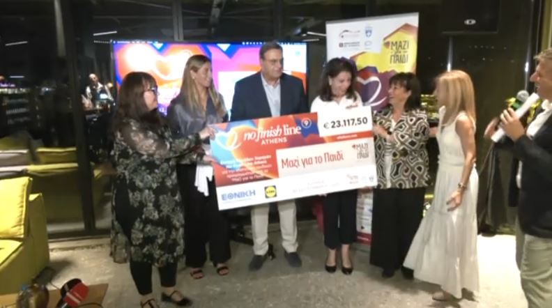 Ο κύκλος του 9ου No Finish Line Athens «έκλεισε» ιδανικά με την παράδοση της επιταγής ύψους 23.000 ευρώ στο «Μαζί για το Παιδί», σε μια λαμπρή εκδήλωση, στο πλαίσιο της οποίας πραγματοποιήθηκαν και ειδικές βραβεύσεις.
