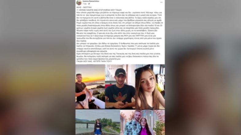 Η οικογένεια βιώνει το δικό της δράμα, με τη μητέρα, Ιωάννα Καραχρήστου, να ζητά με νέα, δραματική της ανάρτηση, απαντήσεις, χαρακτηρίζοντας τον οδηγό του Ι.Χ. που ενεπλάκη στο τροχαίο «φονιά που κυκλοφορεί ελεύθερος».