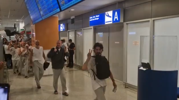 Σχηματίζοντας το σήμα της ειρήνης και κρατώντας λουλούδια οι ακτιβιστές του Global Sumud Flotilla που αφέθηκαν ελεύθεροι από το Ισραήλ, επέστρεψαν με ασφάλειά στην Αθήνα.