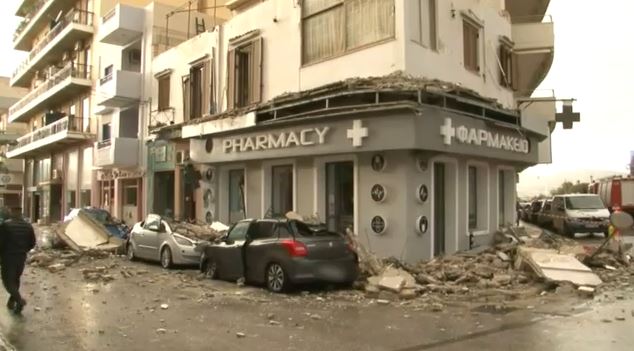Τέσσερα αυτοκίνητα καταστράφηκαν ολοσχερώς, ενώ το φαρμακείο κάτω από το σπίτι που κατέρρευσε το υπόστεγο ήταν γεμάτο κόσμο. Οι ιδιοκτήτες δεν πιστεύουν στα μάτια τους.