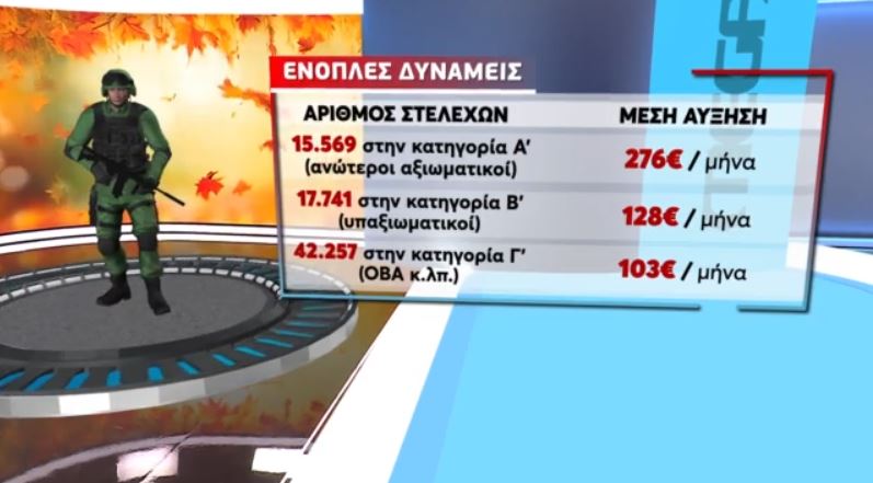 Οι αυξήσεις αφορούν σε 151.422 στελέχη τόσο σε Σώματα Ασφαλείας όσο και στις Ένοπλες Δυνάμεις.