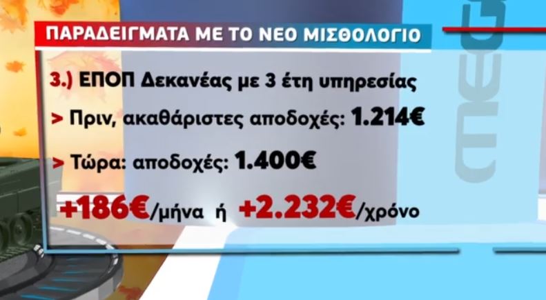 «Τα ποσά που αναφέρθηκαν είναι μεικτές αποδοχές, και το θέμα είναι ότι στις παρουσιάσεις του το υπουργείο συμπεριλαμβάνει και τα ποσά που έχουν δοθεί ήδη από πέρσι τον Γενάρη και τα οποία κάποια από αυτά έχουν δοθεί σε όλο το Δημόσιο. Και τα 30 ευρώ που δόθηκαν πέρσι τον Απρίλιο, και την φοροαπαλλαγή που προκύπτει και την εμφανίζει ως αύξηση στους πίνακες από τις εξαγγελίες του πρωθυπουργού στη ΔΕΘ. Εμφανίζονται ως αύξηση αλλά ουσιαστικά δεν είναι αύξηση που εξαγγέλλει το υπουργείο. Το νομοσχέδιο έχει κατατεθεί ακόμα ούτε στην δημόσια διαβούλευση. Ο ανθυπολοχαγός έπαιρνε πέρσι τον Γενάρη καθαρά στα 1100 ευρώ χονδρικά, και φτάσει με όλες τις αυξήσεις που δόθηκαν σε όλο το Δημόσιο και τις φοροαπαλλαγές, γύρω στα 1300. Αυτή είναι η «πραγματική» αύξηση που θα μπει στην τσέπη του», ανέφερε χαρακτηριστικά.