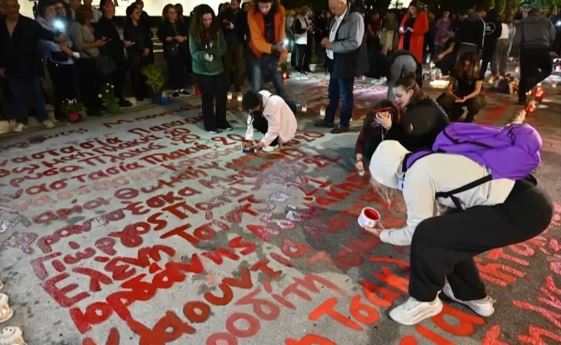 Στη χθεσινή συγκέντρωση που πραγματοποιήθηκε στο Σύνταγμα οι συγγενείς των θυμάτων έγραψαν ξανά τα ονόματα με κόκκινη μπογιά, δηλώνοντας με αυτή την κίνηση πως τα ονόματα όσων έχασαν τη ζωή τους στα Τέμπη δεν θα τα σβήσει η φθορά του χρόνου.