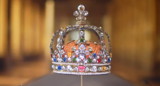 – Η τιάρα, το περιδέραιο και τα σκουλαρίκια της βασίλισσας Μαρίας – Αμαλίας και της βασίλισσας Ορτάνς, φιλοτεχνημένα με χιλιάδες διαμάντια και τεράστια ζαφείρια.