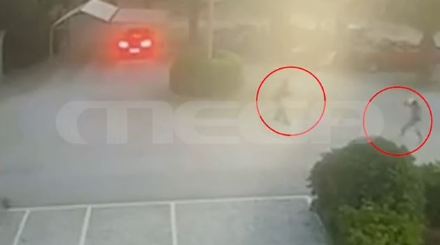 Στα πλάνα φαίνεται ο 22χρονος να κυνηγά τον 68χρονο και να τον πυροβολεί με αεροβόλο όπλο, με τον επιχειρηματία προσπαθώντας να τον απωθήσει χτυπώντας τον με μία άσπρη μπλούζα. Στη συνέχεια ο 22χρονος συνεχίζει να κυνηγά τον 68χρονο, ο οποίος τρέχει για να σωθεί.