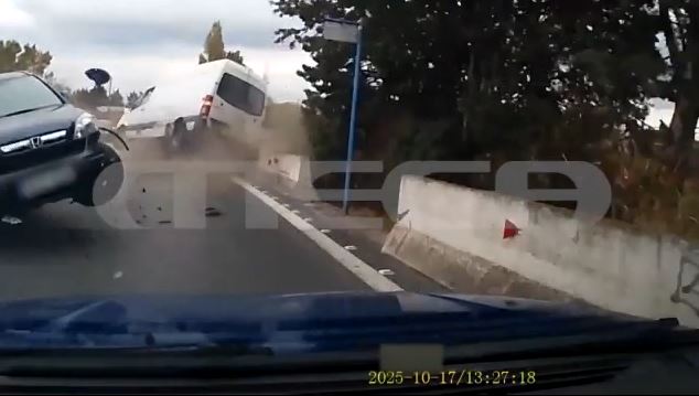 Όπως φαίνεται και στο βίντεο, ένα μαύρο όχημα βγήκε εκτός πορείας, μπήκε στο αντίθετο ρεύμα και έπεσε πάνω σε ένα λευκό βανάκι, ενώ στη συνέχεια το μαύρο ΙΧ συγκρούστηκε με άλλο όχημα.