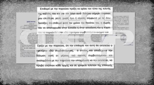 «Είχε αφήσει σε συμβολαιογράφο, πριν έναν χρόνο, συμβολαιογραφική πράξη η οποία λέει ότι επιθυμεί να αποτεφρωθεί και αφήνει πληρεξούσιο τον ανιψιό του να πάρει την στάχτη. Γράφει μέσα και όρο ότι αυτή είναι η επιθυμία του και δεν μπορεί κανένας να την καταρρίψει. Σαν συμβολαιογραφική πράξη η εντολή αποτέφρωσης είναι έγκυρη και δεν μπορεί κανείς να το διαψεύσει. Εμείς πήραμε από τον συμβολαιογράφο τη συμβολαιογραφική αυτήν πράξη και πήγαμε για αποτέφρωση. Δεν χρειαζόμασταν κάτι άλλο αφού υπάρχει συμβολαιογραφική πράξη. Λέει ‘αν εγώ πεθάνω, όταν πεθάνω θέλω να καώ και η τέφρα θα πάει δίπλα στο σπίτι που μένω, δίπλα σε κάποια εικονίσματα’. Ακόμα ο ανιψιός είναι μπλεγμένος, δεν έχει έρθει να πάρει την τέφρα. Η (ανιψιά) έβαλε τον πατέρα της να έρθει να πάρει την τέφρα να κάνει τρισάγιο, εγώ της είπα ότι δεν γίνονται αυτά τα πράγματα, εντολέας μου δεν είναι αυτή», λέει ο ιδιοκτήτης του γραφείου τελετών που ανέλαβε την αποτέφρωση.