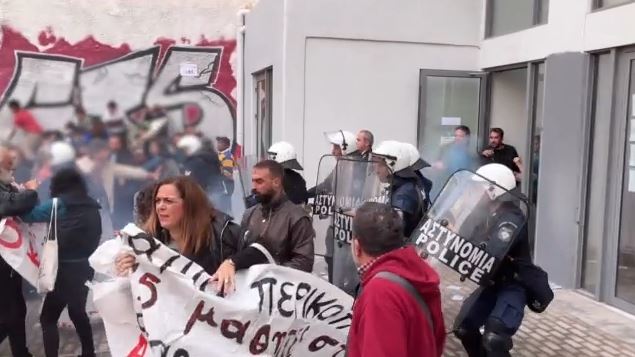 Η διαμαρτυρία γονέων, μαθητών και εκπαιδευτικών δημοτικών σχολείων στη Διεύθυνση Πρωτοβάθμιας Εκπαίδευσης στο Μεταξουργείο, μετατράπηκε σε πεδίο μάχης.