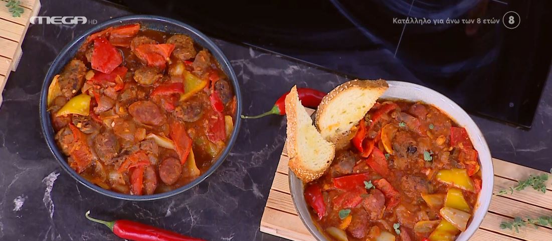 Ο Δημήτρης Σκαρμούτσος μάς ετοιμάζει λουκάνικα σπετζοφάι