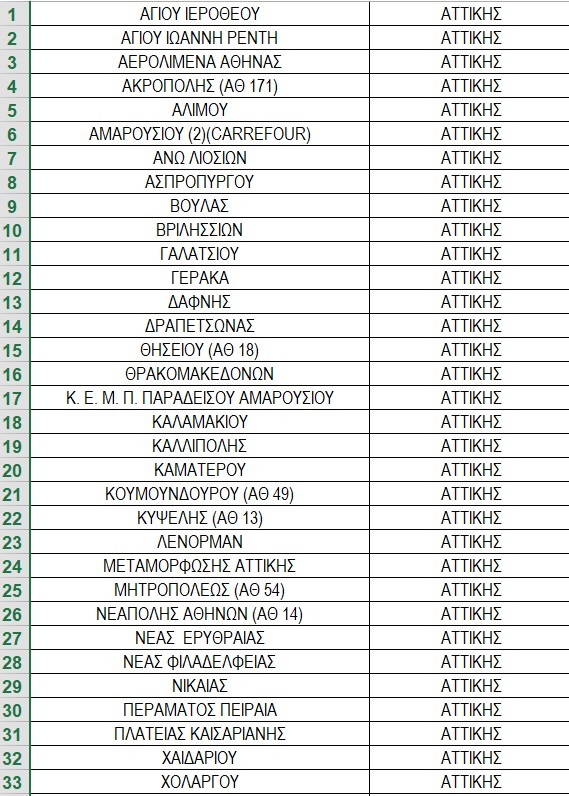 Η μεγάλη πλειοψηφία των καταστημάτων αυτών βρίσκονται στην Αττική (33), οκτώ στη Θεσσαλονίκη και από ένα στην Πάτρα, στη Ρόδο, στα Ιωάννινα, στην Ιεράπετρα και στα Χανιά.