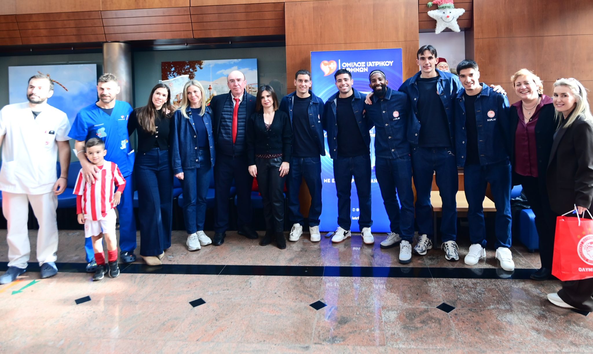 Ροντινέι, Ορτέγκα, Μπότης, Έσε, Λιατσικιούρας επισκέφτηκαν το μεσημέρι το Παιδιατρικό Κέντρο Αθηνών του Ομίλου Ιατρικού Αθηνών και μοίρασαν δώρα σε παιδιά που νοσηλεύονται.