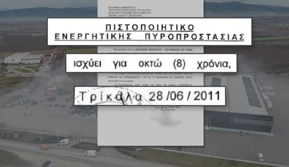 Είχε προηγηθεί, μία ημέρα πριν, πιστοποιητικό ενεργητικής πυροπροστασίας της Πυροσβεστικής Υπηρεσίας Τρικάλων με ισχύ οκτώ ετών.