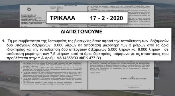 Έγγραφο ντοκουμέντο του MEGA αποκαλύπτει ότι ήδη από τις 17 Φεβρουαρίου του 2020 η Περιφέρεια Θεσσαλίας είχε διαπιστώσει παραβάσεις και ελλείψεις στο εργοστάσιο.