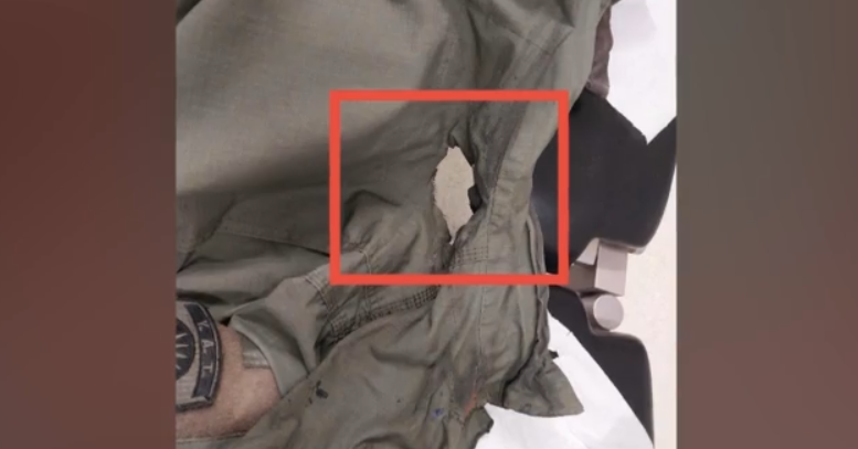 Αυτά είναι τα σημάδια στη στολή του αστυνομικού, ο οποίος δέχθηκε βόμβα μολότοφ κατά τη διάρκεια των επεισοδίων και νοσηλεύεται με εγκαύματα.