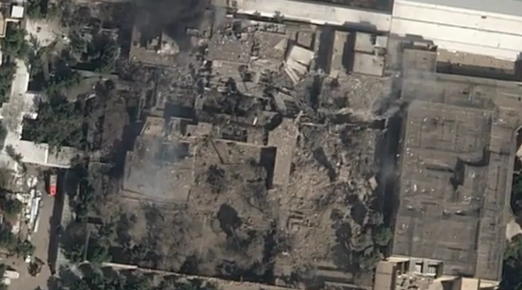 Σε αυτή τη φωτογραφία το κτιριακό συγκρότημα που ανήκει στον ανώτατο ηγέτη του Ιράν φαίνεται εντελώς κατεστραμμένο.
