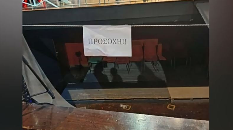 Το συγκεκριμένο κενό βρίσκεται δίπλα στη σκηνή και, όπως καταγγέλλουν οι γονείς, ήταν απλώς καλυμμένο με ένα πανί.