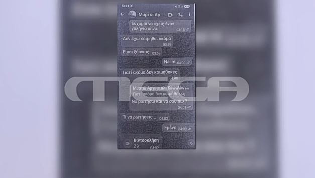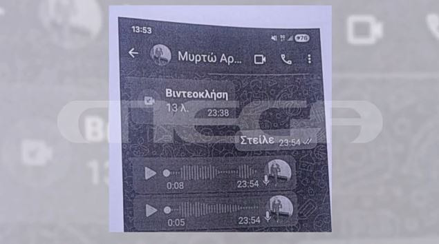 «Το βράδυ της Δευτέρας με πήρε η Μυρτώ με βιντεοκλήση. Ήταν σε άσχημη ψυχολογική κατάσταση και μου είπε ότι είχε φύγει από το σπίτι της και θα διανυκτέρευε στα παγκάκια, λέγοντάς μου ότι δεν έχει καθόλου χρήματα μαζί της. Εγώ της πρότεινα να επιστρέψει και μου απάντησε ότι δεν έχει κανέναν. Τότε της πρότεινα να της στείλω χρήματα ώστε να διανυκτερεύσει σε κάποιο ξενοδοχείο, όπως και έκανα. 220 ευρώ με IRIS. Τελευταία επικοινωνία που είχα μαζί της με βιντεοκλήση ήταν την 04:02 τα ξημερώματα. Ήταν ξαπλωμένη στο κρεβάτι. Η κλήση διακόπηκε απότομα όταν μπήκε κάποιος στο δωμάτιο και η τελευταία λέξη που συγκράτησα ήταν το όνομα …».