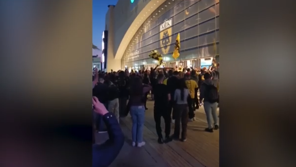 Εκατοντάδες φίλοι της ΑΕΚ έστησαν γλέντι πανηγυρίζοντας τη σπουδαία νίκη επί του ΠΑΟΚ, με την οποία η ομάδα τους παρέμεινε με διαφορά 5 βαθμών στην κορυφή της Stoiximan Super League.