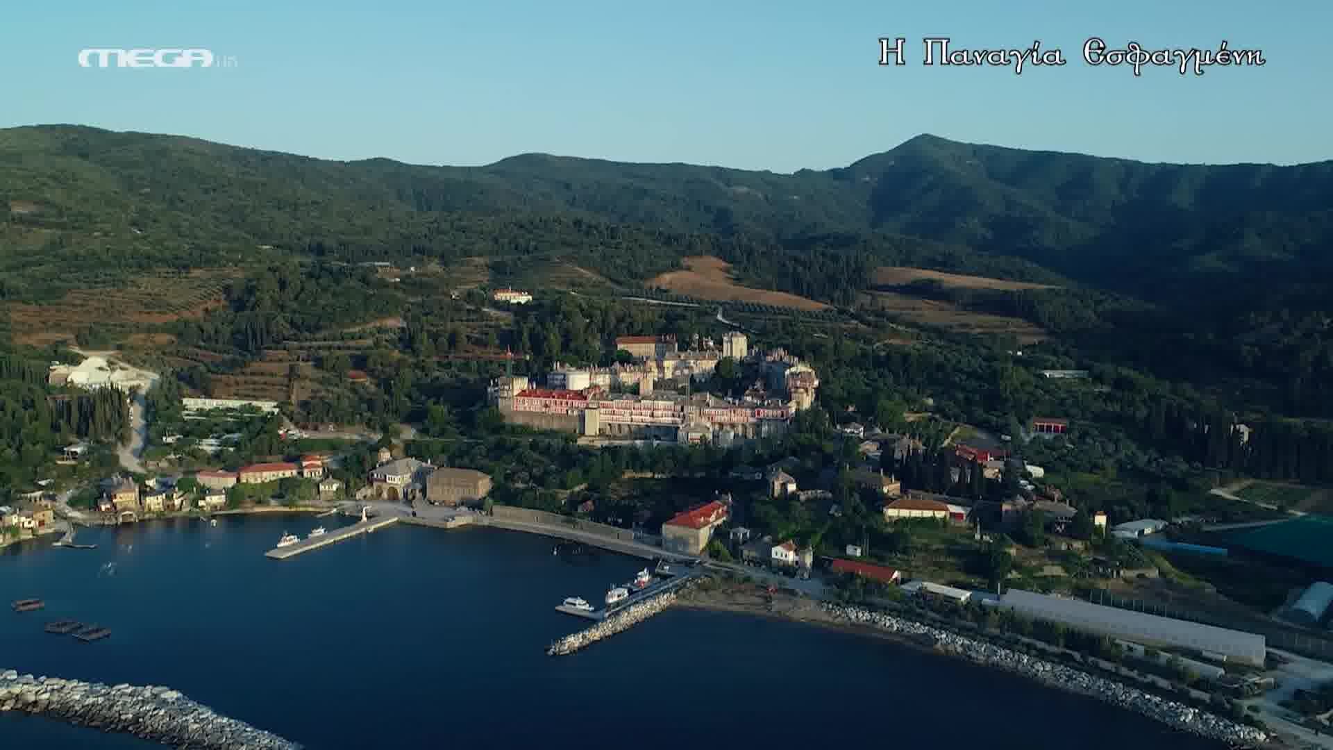 Η θαυματουργή εικόνα της Θεοτόκου της Εσφαγμένης είναι τοιχογραφία του 14ου αιώνα και βρίσκεται στο νάρθηκα του παρεκκλησίου του Αγίου Δημητρίου, το οποίο είναι ενσωματωμένο στο Καθολικό της Ι.Μ.Μ. Βατοπαιδίου. Το ιστορικό της εικόνας αυτής καταγράφεται σε χειρόγραφο του 17ου αιώνα, που επιγράφεται «Προσκυνητάριον του Βατοπαιδίου» εις το κεφάλαιον «Περί της ιεράς Εικόνος της Εσφαγμένης και του παρ’ αυτής εξαισίου τερατουργήματος».