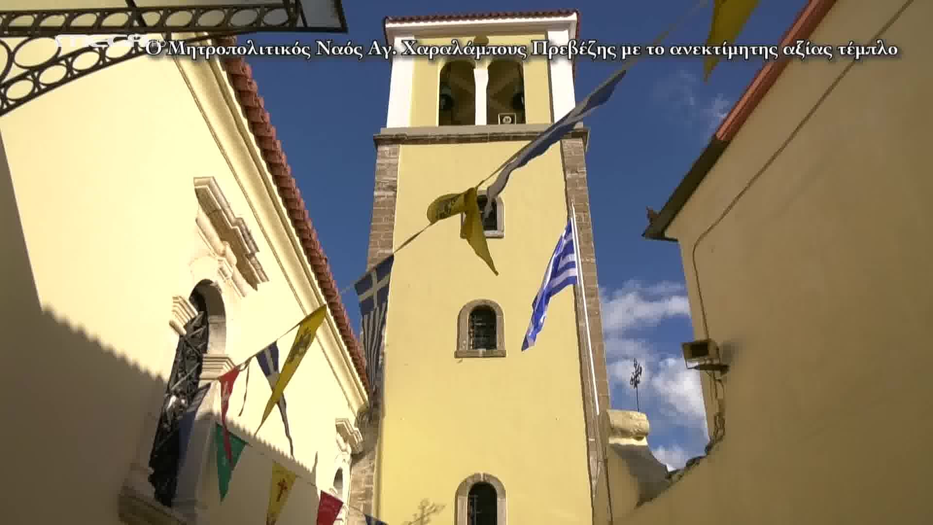 Στέκει αγέρωχος εδώ και τρεις ολόκληρους αιώνες, ενώ πριν γίνει ενοριακός ναός ήταν οικογενειακός. Ο Μητροπολιτικός ναός του Αγίου Χαραλάμπους της Ιεράς Μητροπόλεως Νικοπόλεως και Πρεβέζης «κρύβει» ένα μεγάλο θησαυρό, ένα μοναδικό ξυλόγλυπτο τέμπλο από καρυδιά και φύλλα χρυσού που φτιάχτηκε το 1827.